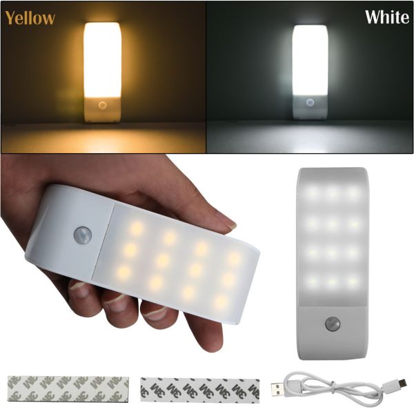 12LED USB Rechargeable PIR Motion Induction Sensor Closet Nightlight Lamp